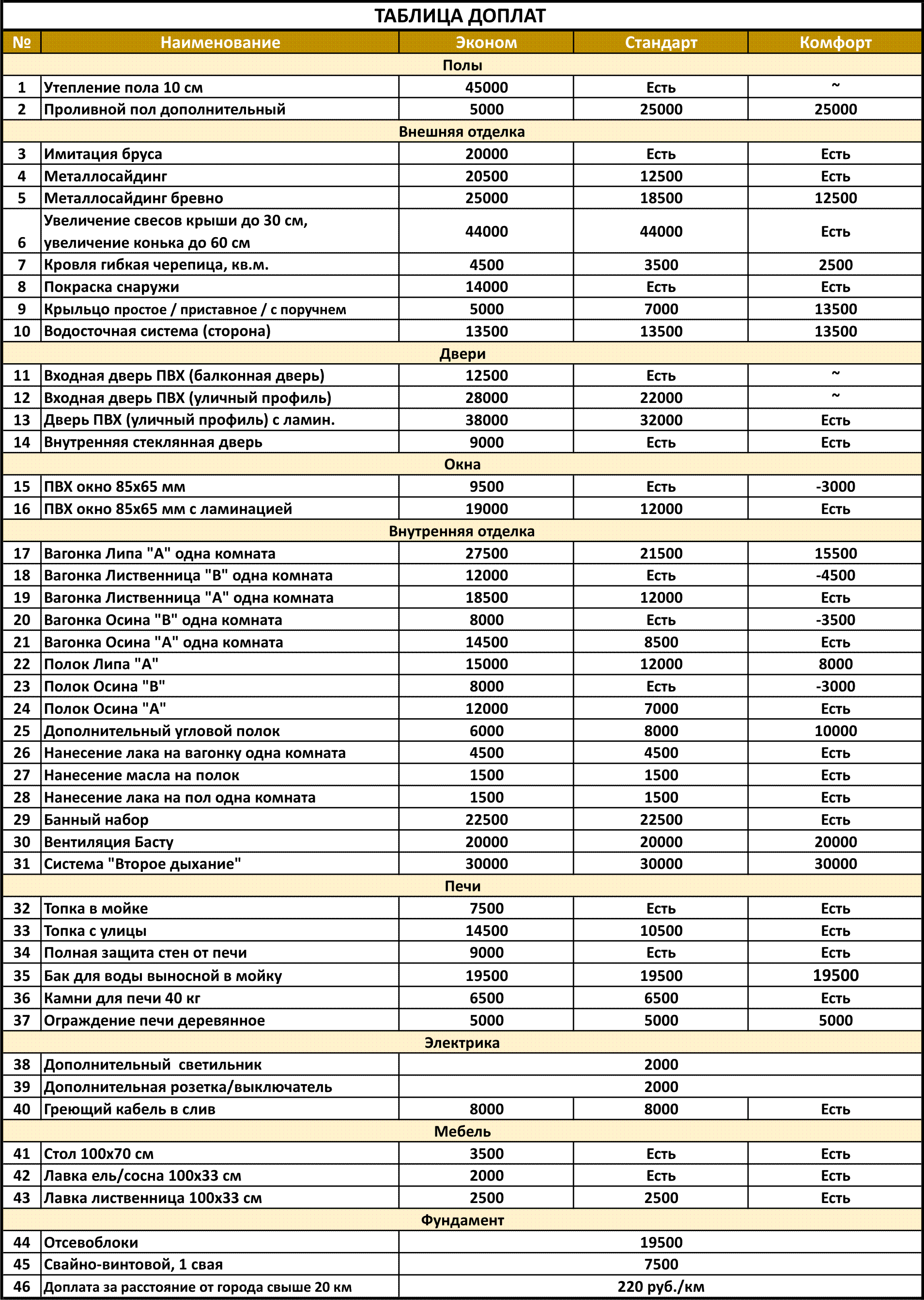 | Терраса | 120 000 | 150 000 | 180 000 |