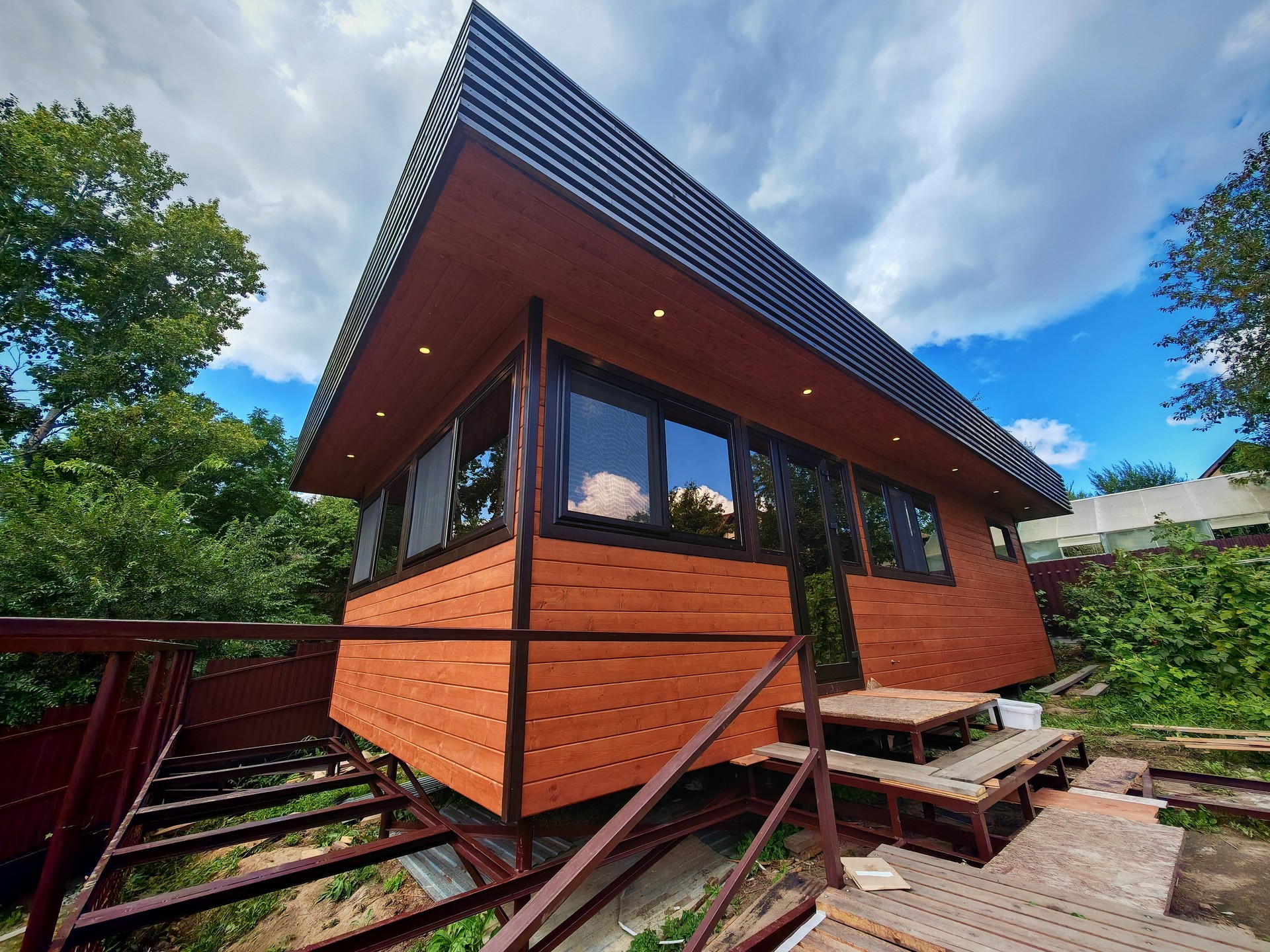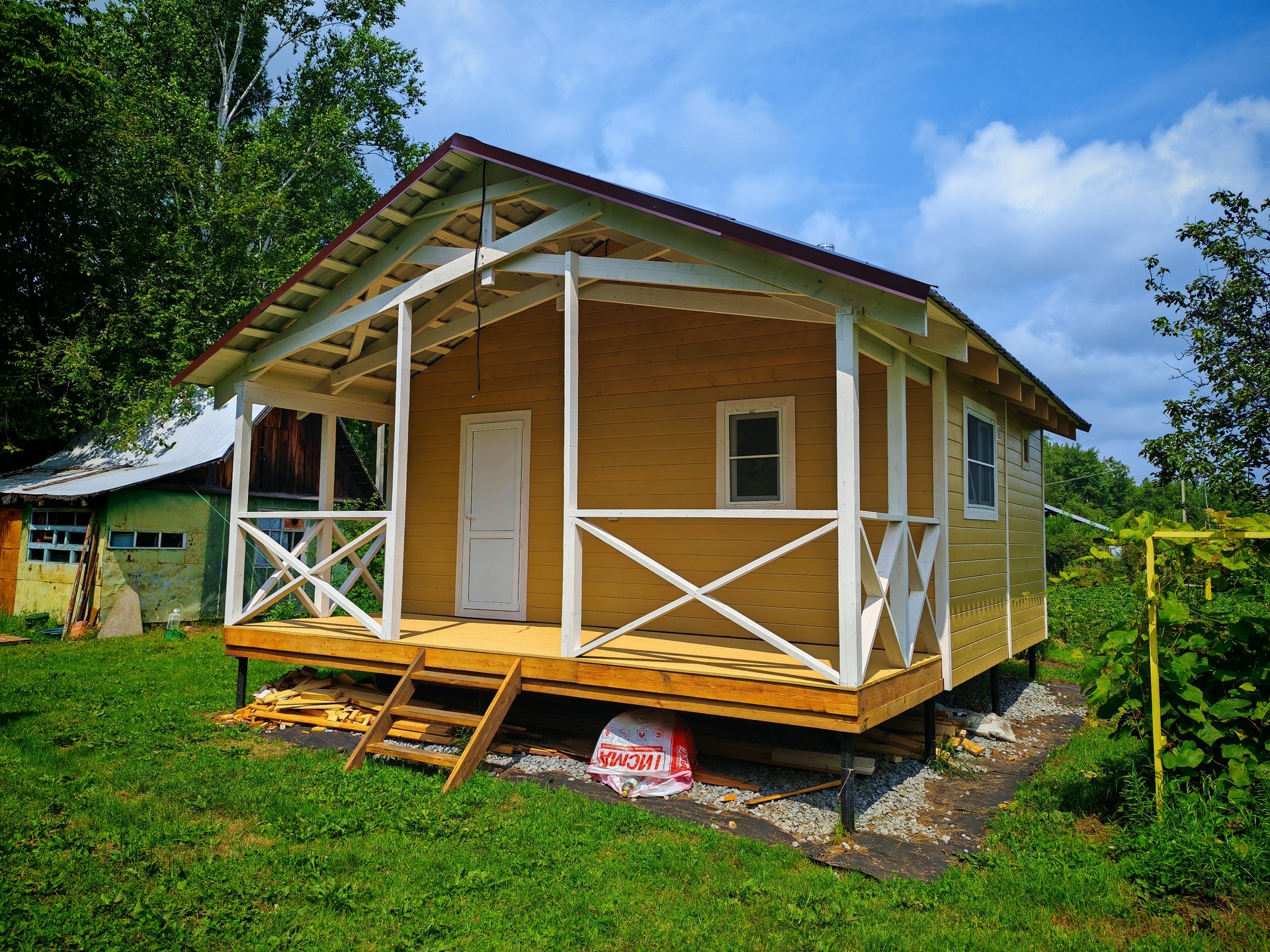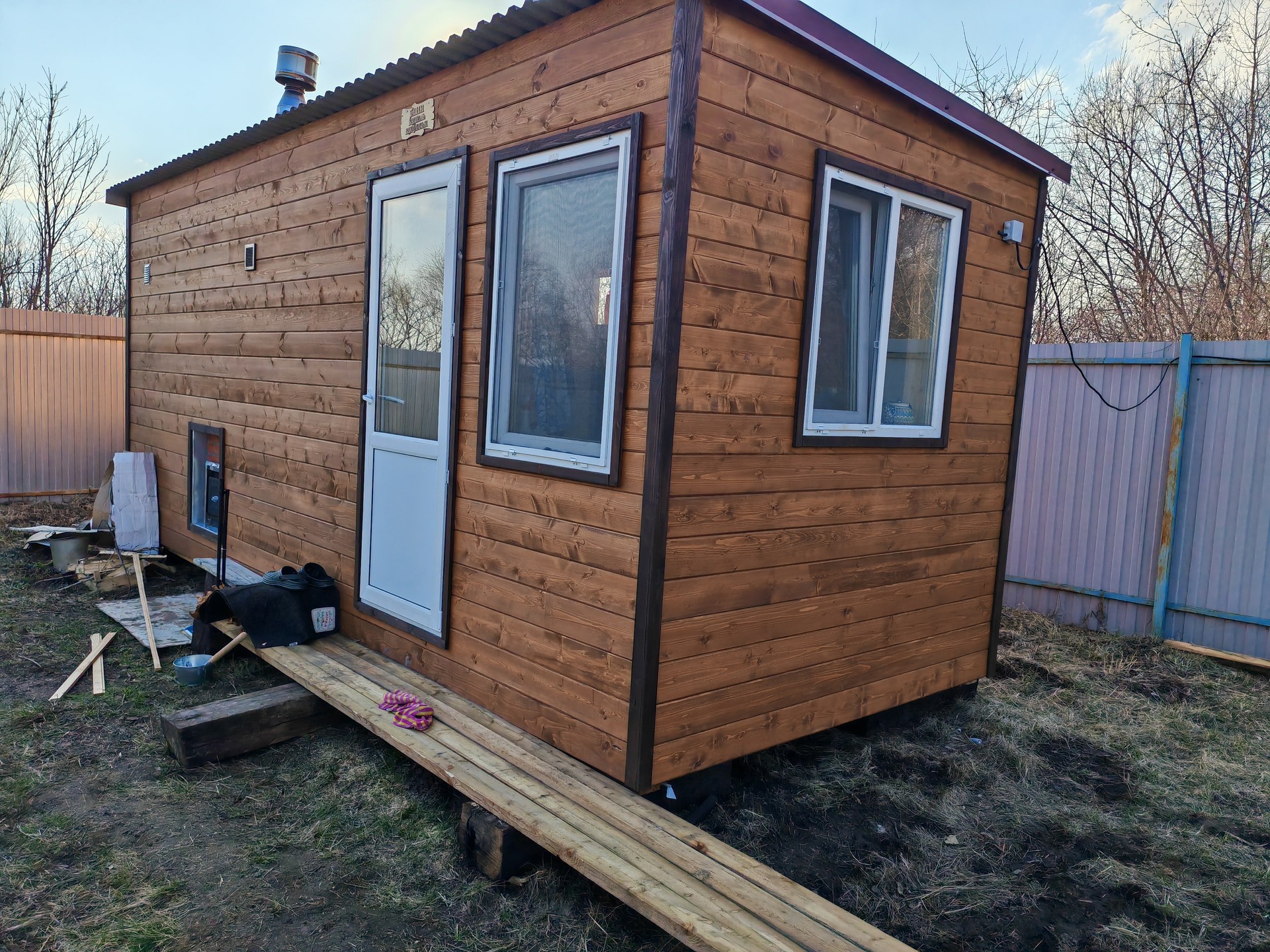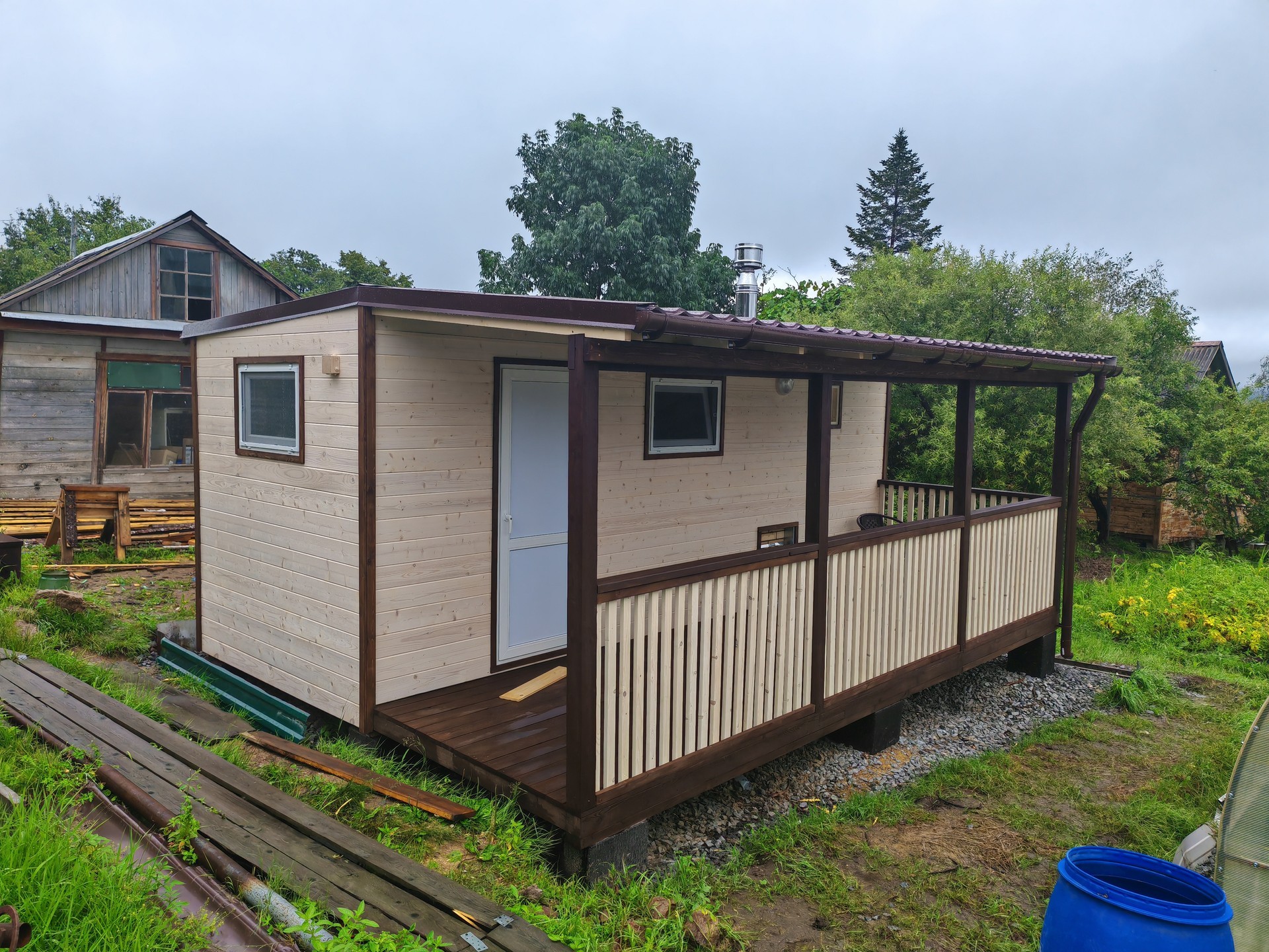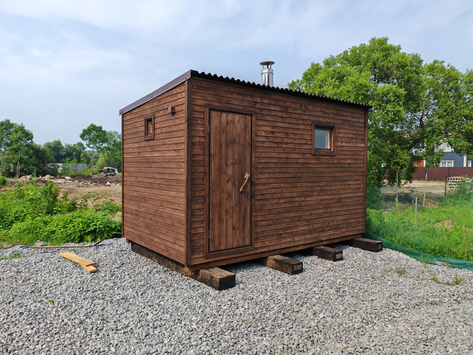 Привозим на участок готовую постройку, в которой сразу можно мыться.